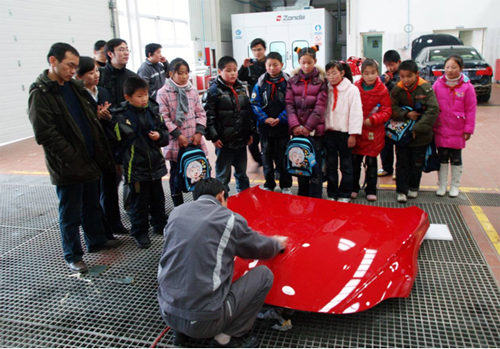 参观中,新民小学一位胖乎乎的小朋友对BMW的每件电子元件和小车模型都异常的感兴趣,他说,“我长大后的梦想就是能成为一名汽车设计师,设计出各种造型的小汽车”。看到孩子们个个玩得很高兴,新民小学的老师代表不禁感叹道:“孩子们在感受的企业和社会给予的责任、奉献、温暖后,这些孩子未来会成长为同样具有社会责任感的人,会用一颗感恩的心来对待自己的生活和身边的人。”