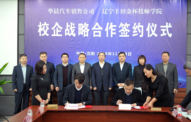 为进一步深化校企合作、产教融合,大力实施工学一体的技能人才培训模式,华晨中华汽车销售公司与辽宁丰田金杯技师学院于2018年11月28日举行校企战略合作签约仪式。