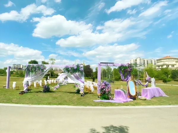 值得一提的是,假期里的云居酒店还见证了别样的浪漫。几场“以天为幕、以地为毯”的草坪婚礼在冰心路店20000㎡大草坪上浪漫上演。藤蔓缠绕的花门缀满繁星般的鲜花,木质长椅整齐排开,新人在亲友的祝福中许下誓言,古城的千年文脉与新人的幸福时刻完美交融。傍晚时分,草坪上的灯串亮起,新人与宾客围坐畅谈,木香与花香交织成最动人的旋律。许多住客驻足观礼,称这是“古城里最温暖的风景”。