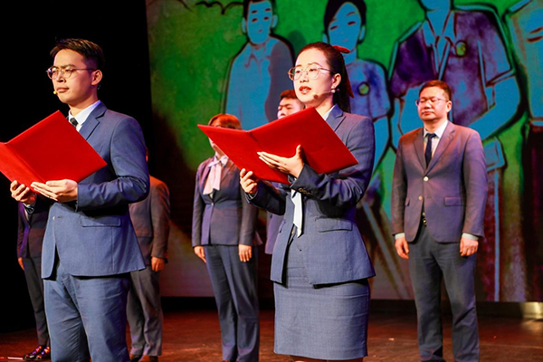 有一种韧劲,叫“从业务一线到舞台中央”:汇演的主角来自于总部与各下属企业的一线员工。他们将职场中攻坚克难的“狠劲”无缝衔接到舞台。业务一线工作繁忙,年末任务尤其艰巨,所有人只能利用休息时间“见缝插针”地排练。午休时,会议室暂变排练厅;下班后,办公区灯火通明,歌声与台词声在夜色中回响。大家反复打磨节目细节,嗓子哑了含颗糖继续,手脚酸了互相按摩鼓励,记不住动作便录下视频回家复习。无人言苦,更无人放弃,这份为目标全力以赴的执着,正是申华人最真实的本色。