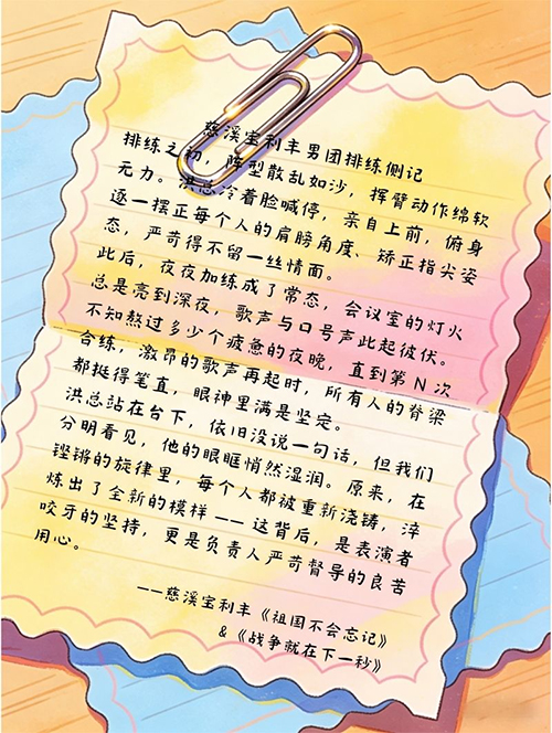 有一种力量,叫“党员在身边”:在这场全员奋战中,党组织的战斗堡垒作用和党员的先锋模范作用格外鲜明。党支部书记与工会小组长积极协调,党员干部冲锋在前、勇担重责。无论是排练统筹、后勤保障还是安全守护,党员身影始终挺在一线。他们不仅是组织者,更是与大家并肩作战的战友,在统筹协调、攻坚克难中充分展现了先锋本色,将来自不同单位、部门的伙伴紧密凝聚,形成了党引领下的大团结局面,赋予了这场汇演深刻而有力的精神内核。